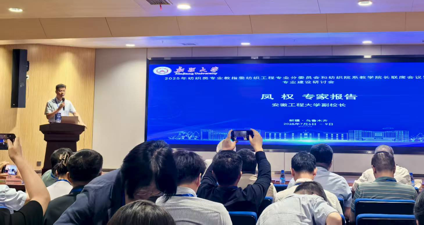 7月7日至9日,由教育部高等学校纺织类专业教学指导委员会主办的“2025年纺织类专业教指委纺织工程专业分委员会和纺织院系教学院长联席会议暨纺织工程专业建设研讨会”在新疆乌鲁木齐市新疆大学隆重召开。我校党委常委、副校长凤权教授应邀出席会议,与来自全国各高校的纺织类专业教学指导委员会委员、纺织院系教学院长及专家学者齐聚一堂,共同探讨纺织工程专业建设与教学改革的新思路、新举措。