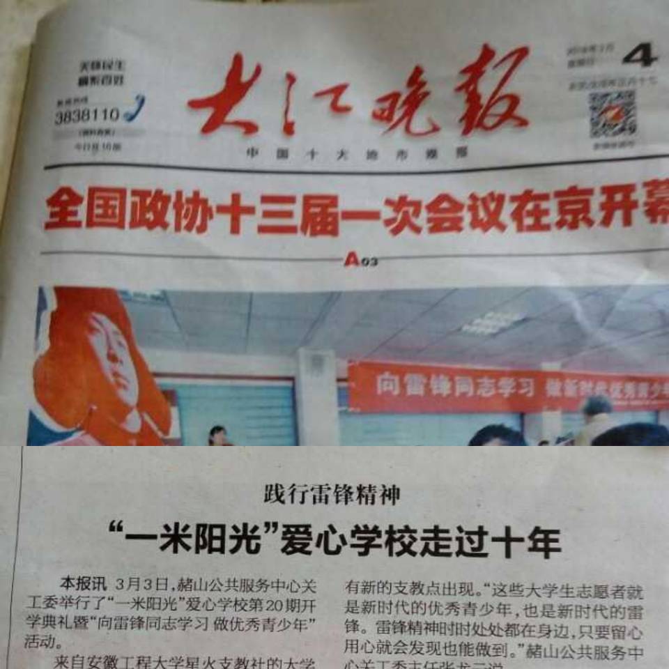此次活动引起了芜湖社会各界及媒体的广泛关注,“大江晚报”、“今日芜湖”等媒体对活动进行了报道。学习雷锋,弘扬雷锋精神,传递温暖。在这个春意浓浓的三月,作为当代青年,我们要用自身行动去彰显“雷锋精神”,践行社会主义核心价值观,做向上向善好青年!