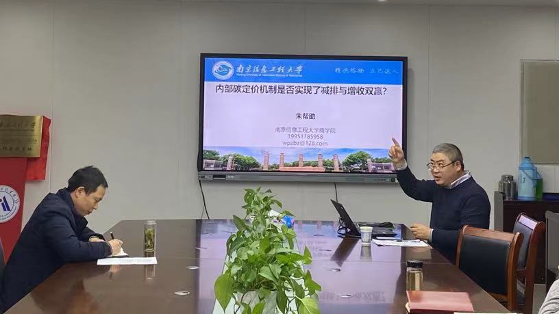 朱帮助开展了题为内部碳定价机制是否实现了减排与增收双赢?的学术报告,报告从全球碳排放的研究现状和研究意义出发,探讨了内部碳定价机制与企业减排的密切关系,以前沿学术研究成果为例,详细阐述了内部碳定价机制对减排和增收的作用机制,讲解了样本数据的相关算法研究,鼓励师生们做研究时要善于发现问题、深度挖掘数据,善于学习使用工具、模型和实证数据分析来解决实际问题,从而进一步提高学术论文写作的质量。