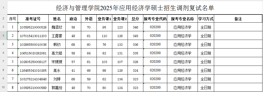 经济与管理学院2025年应用经济学硕士招生调剂复试名单