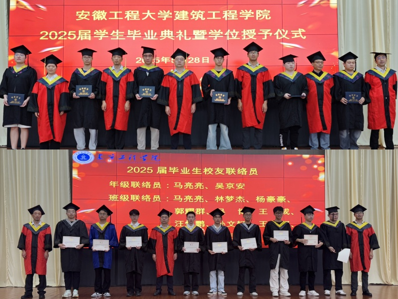 5月28日,建筑工程学院2025届学生毕业典礼在图书综合楼5楼报告厅举行,400多名师生欢聚一堂,以典礼见证学生的成长与收获,开启毕业生新的旅程与辉煌。建筑工程学院党政负责人曾磊、张礼波、曹兵、张明,学生家长、各系部负责人、教师代表、毕业班辅导员、团学干部等出席典礼。典礼由张礼波主持。