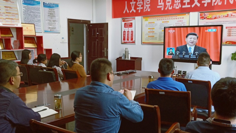 5月4日上午10:00,马克思主义学院师生在学院会议室集中收看纪念马克思诞辰200周年大会,认真聆听习近平总书记在纪念大会上的重要讲话。学院党总支书记、全体没有课的思政课教师和研究生等一同观看直播,并对习近平总书记的重要讲话展开了热烈讨论。