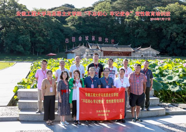 为深入学习习近平新时代中国特色社会主义思想和党的十九大精神,深化“讲严立”专题警示教育活动,进一步强化党务干部队伍和党员的思想武装,进一步使广大思政课教师牢固树立“四个意识”、坚定“四个自信”,教育引导党员干部从红色资源中汲取养分,不忘初心、正心明道,马克思主义学院于2018年7月16-18日组织学院党总支委员、支部委员、校宣讲团骨干、部分思政理论课教师党员等赴古田干部学院开展思政课教师“不忘初心、牢记使命”党性教育培训班。