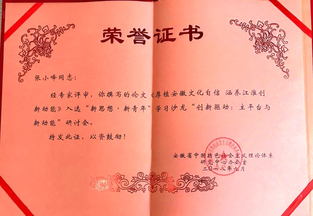 该期学习沙龙研讨的主题是“创新驱动:主平台与新动能”,中共安徽省委宣传部、省中国特色社会主义研究中心在2018年7月就印发了学习沙龙征稿通知,8月份我校中国特色社会主义研究基地组织相关研究专长的教师积极撰写理论文章,我院教师张小峰博士撰写的《厚植安徽文化自信涵养江淮创新动能》入选本期学习沙龙研讨会论文集。