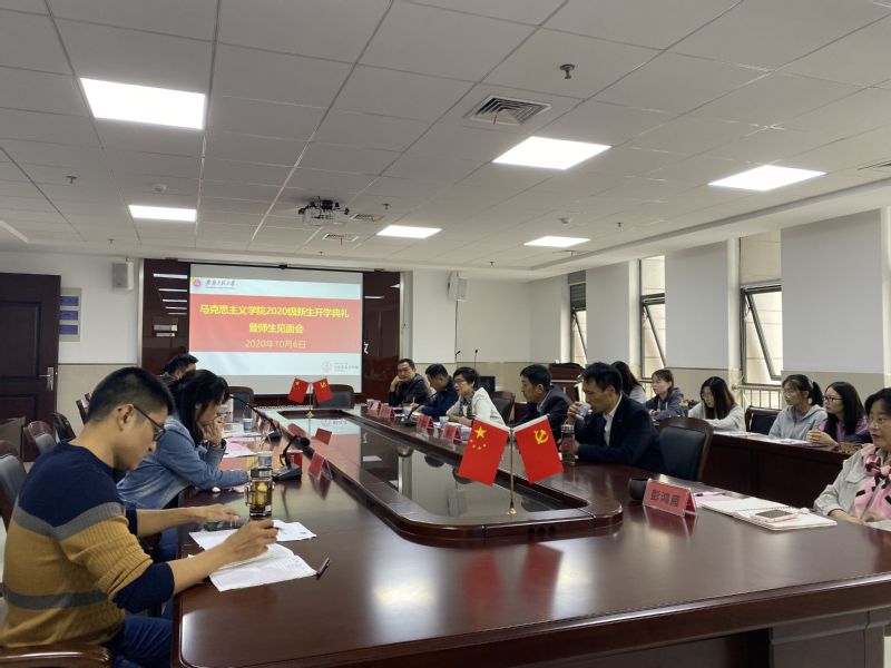 10月6日下午,马克思主义学院在T1512会议室召开了2020级新生开学典礼暨师生见面会。校党委副书记苏国红,校党委常委、宣传部长、学院党总支书记孙浩然,学院其他领导、研究生导师代表、研究生秘书、研究生辅导员、2018级、2019级研究生代表以及全体2020级新生参加典礼。会议由学院副院长李海涛主持。