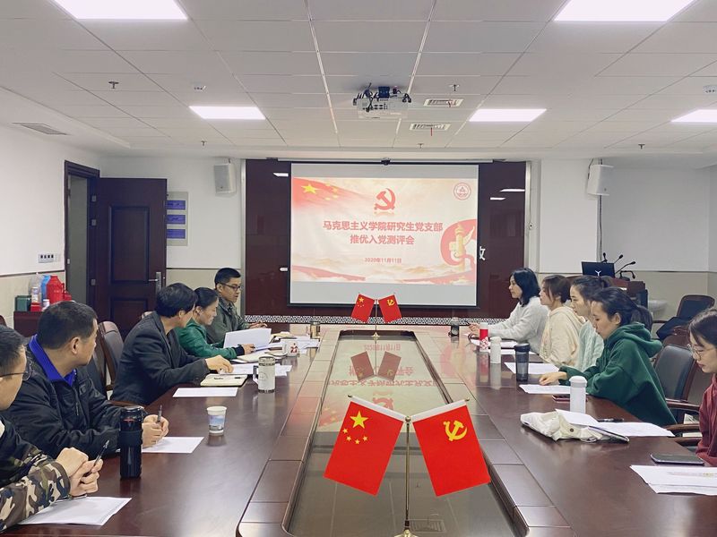 11月11日晚,马克思主义学院研究生党支部在学院1512会议室召开支部推优入党测评会。学院党总支委员、研究生党支部全体党员以及入党积极分子参加会议,会议由研究生党支部书记李德才主持。