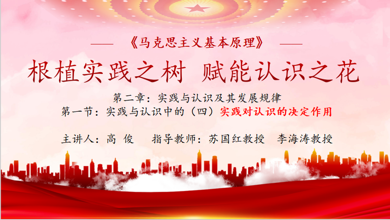 我校高俊团队参赛课程为《马克思主义基本原理》,参赛章节为 “实践对认识的决定作用” 。入围决赛后,马克思主义学院抽调教学经验丰富的老师,成立专门指导小组夜以继日地为参赛选手提供全方位的指导和帮助。专家小组在教学内容设计、课件制作、课程讲授等方面反复打磨。决赛时,高俊紧扣主题展开原理剖析,他引经据典,通过案例教学、实物演练等方式层层推进教学,整个过程逻辑严密、一气呵成,得到了专家评委们的一致认可。