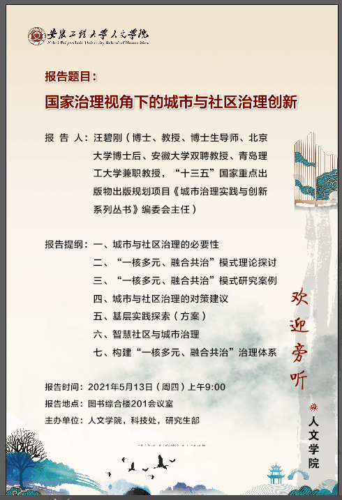 学术报告预告:国家治理视角下的城市与社区治理创新