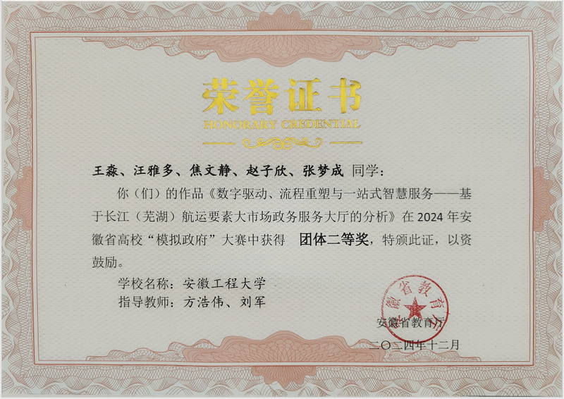 安徽省大学生学习马克思主义理论成果大赛二等奖