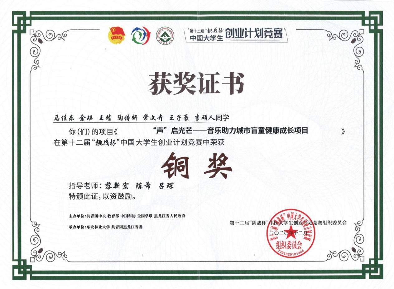 第十二届“挑战杯”全国大学生创业计划竞赛铜奖