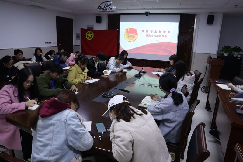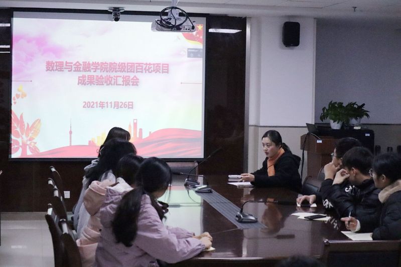 11月26日下午,数理与金融学院2021-2022学年第二次团支书班长例会在图书馆1612举行,对2021年度学院团百花项目进行验收,并安排布置11月-12月团支部组织生活会等事宜。会议由院团委书记苏燕南主持,学院辅导员程安琪、汤建文,各班团支书、班长,院团百花项目负责人,团委学生会部分成员,互联网金融202团支部成员参加。