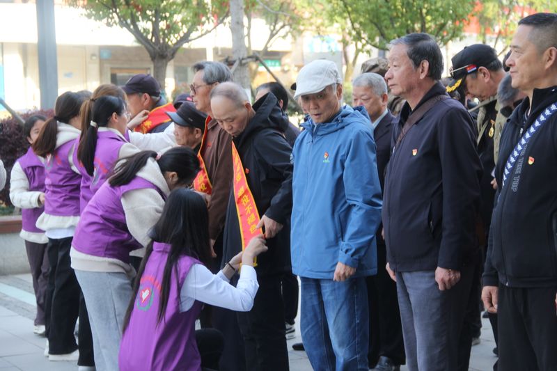 活动当天,40位退役老兵身着整齐军装,胸前佩戴着党徽和荣誉勋章出席活动,学院志愿者怀着崇敬之情为老兵们佩戴绶带。志愿者引导退役军人乘坐芜湖轻轨,为同学们讲述了英烈故事,共同开启红色记忆之旅。