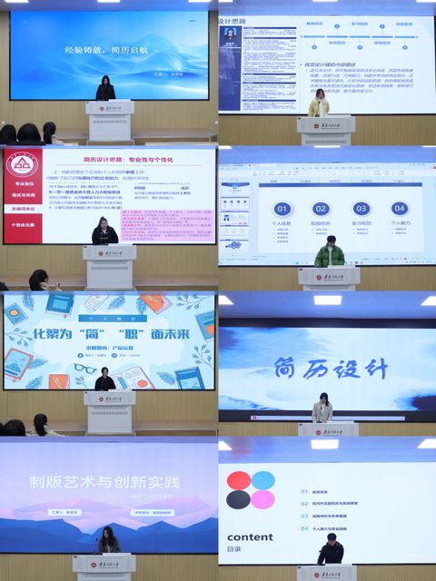 决赛现场,选手们从设计思路、重点内容、自身优势等方面进行全方位展示。提问环节,评委们对简历中的亮点与不足与选手们进行了深入交流与探讨,并就每位选手的简历作品提出了针对性的修改意见和建议。